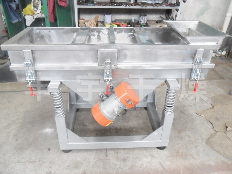 本機(jī)上部采用快拆式手柄,把整機(jī)連成一個整體,上蓋全密封、有效防止物料在過篩時由于振動而產(chǎn)生粉塵飛揚(yáng)。篩體下部安裝振動電機(jī),有效保證了物料的結(jié)構(gòu)緊湊,下部采用彈簧減振,使整機(jī)在平穩(wěn)狀態(tài)下工作。下面底座采用可調(diào)式,可調(diào)節(jié)正在過篩時的篩面傾斜角度,根據(jù)物料特性以取得過篩效果。