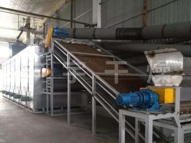干燥機(jī)工作時(shí),冷空氣通過(guò)熱交換器進(jìn)行加熱,采用科學(xué)合理循環(huán)方式,使熱空氣穿流通過(guò)床面上的被干燥物料進(jìn)行均勻的熱質(zhì)交換,機(jī)體各單元內(nèi)熱氣流在循環(huán)風(fēng)機(jī)的作用下進(jìn)行熱風(fēng)循環(huán),后排出低溫高濕度的空氣,平穩(wěn)高效地完成整個(gè)干燥過(guò)程。